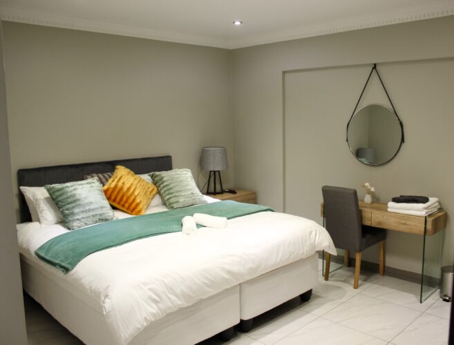 100 on Kayburne Our Guest House PrimeLocation Close to major attractions, restaurants, and business hubs. ComfortElegance Beautifully furnished rooms with all essential amenities. PersonalizedService A warm welcome and attentive staff to make your stay special. PeaceSerenity A relaxing atmosphere, perfect for unwinding. More Info Find Your Perfect Room Standard Room Info Comfort Room Info Comfort Room 1 Info Executive Suite Info PVT Exec Suite Info 100 on Kayburne +27 10 502 1815 info@100onkayburneguesthouse.co.za 100 Kayburne, Randpark Ridge, 1288 ✥Site Links Home About Us Bookings Gallery Contact Us Home About Us Bookings Gallery Contact Us